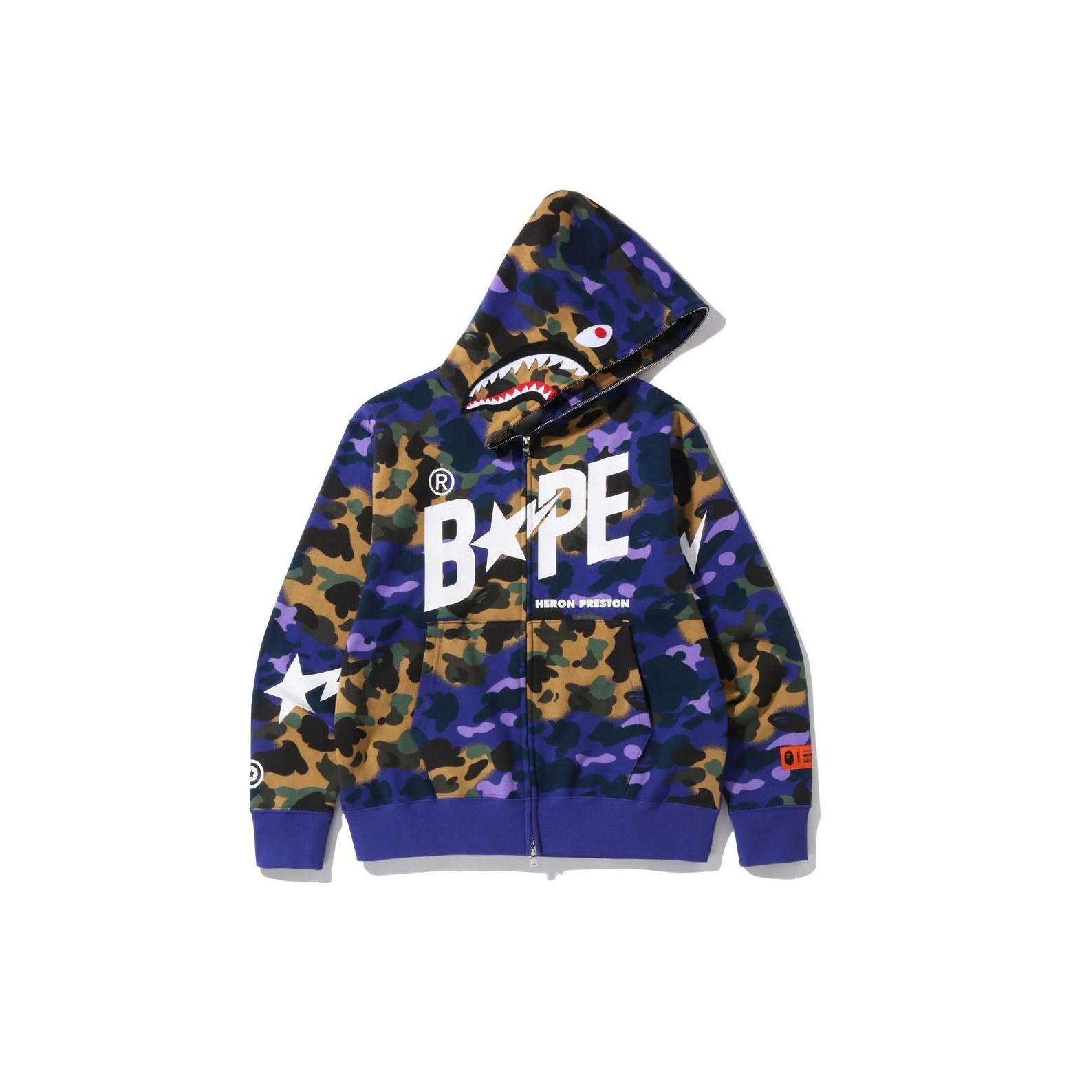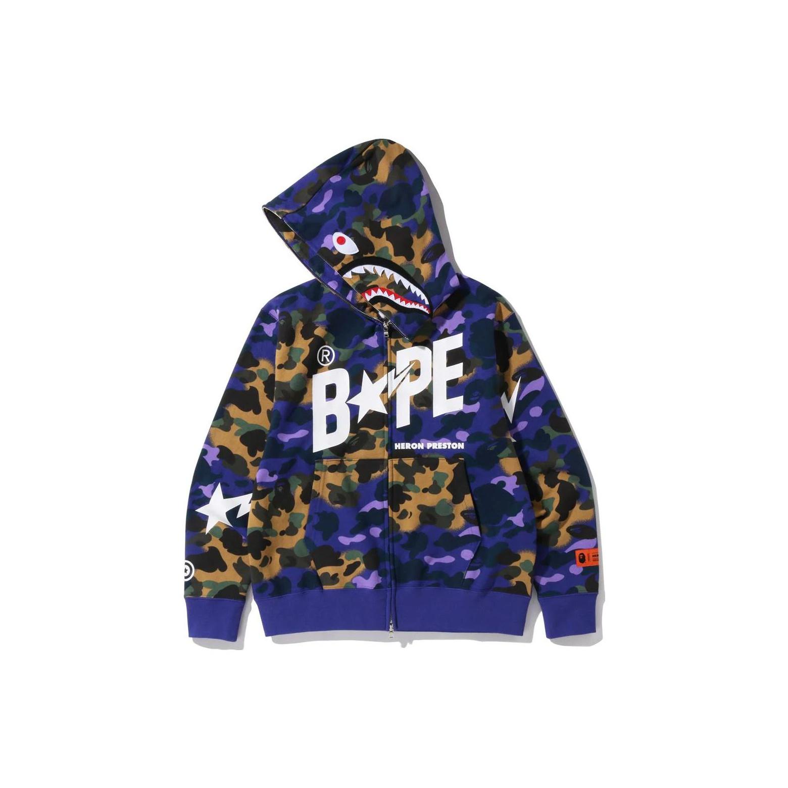 A BATHING APE X Heron Preston Mix 1st Camo Shark Relaxed Fit Full Zip Hoodie