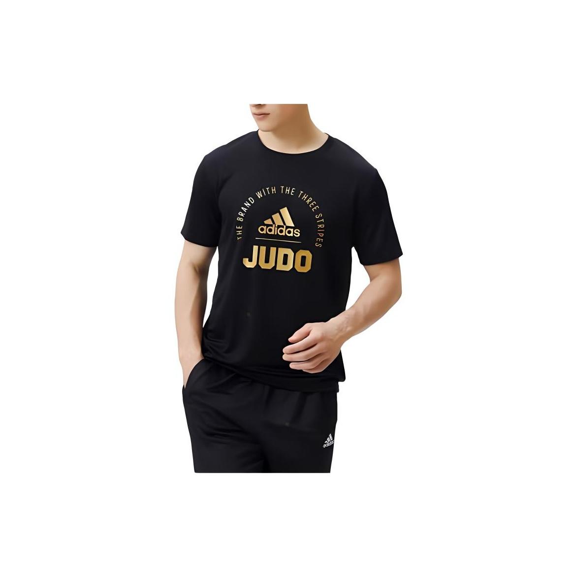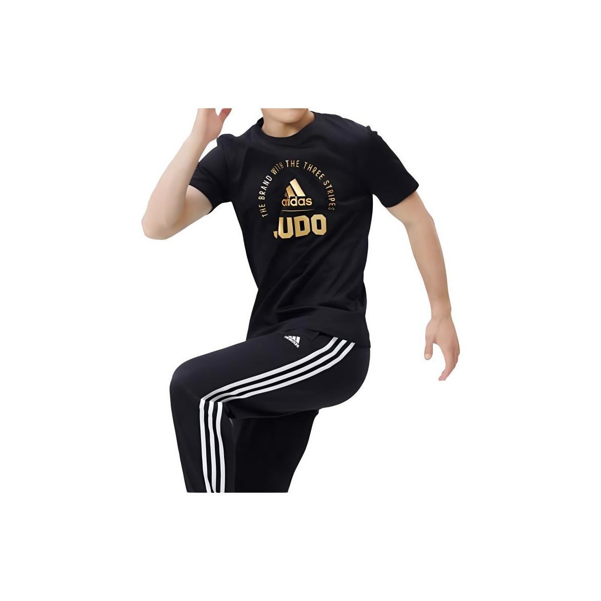 Adidas Casual Sportswear Men Set Black Base With White Stripes Coats+Black/Gold T-Shirts+Black/White Pants
