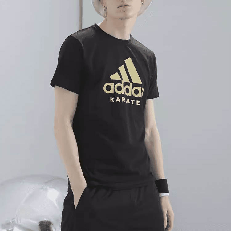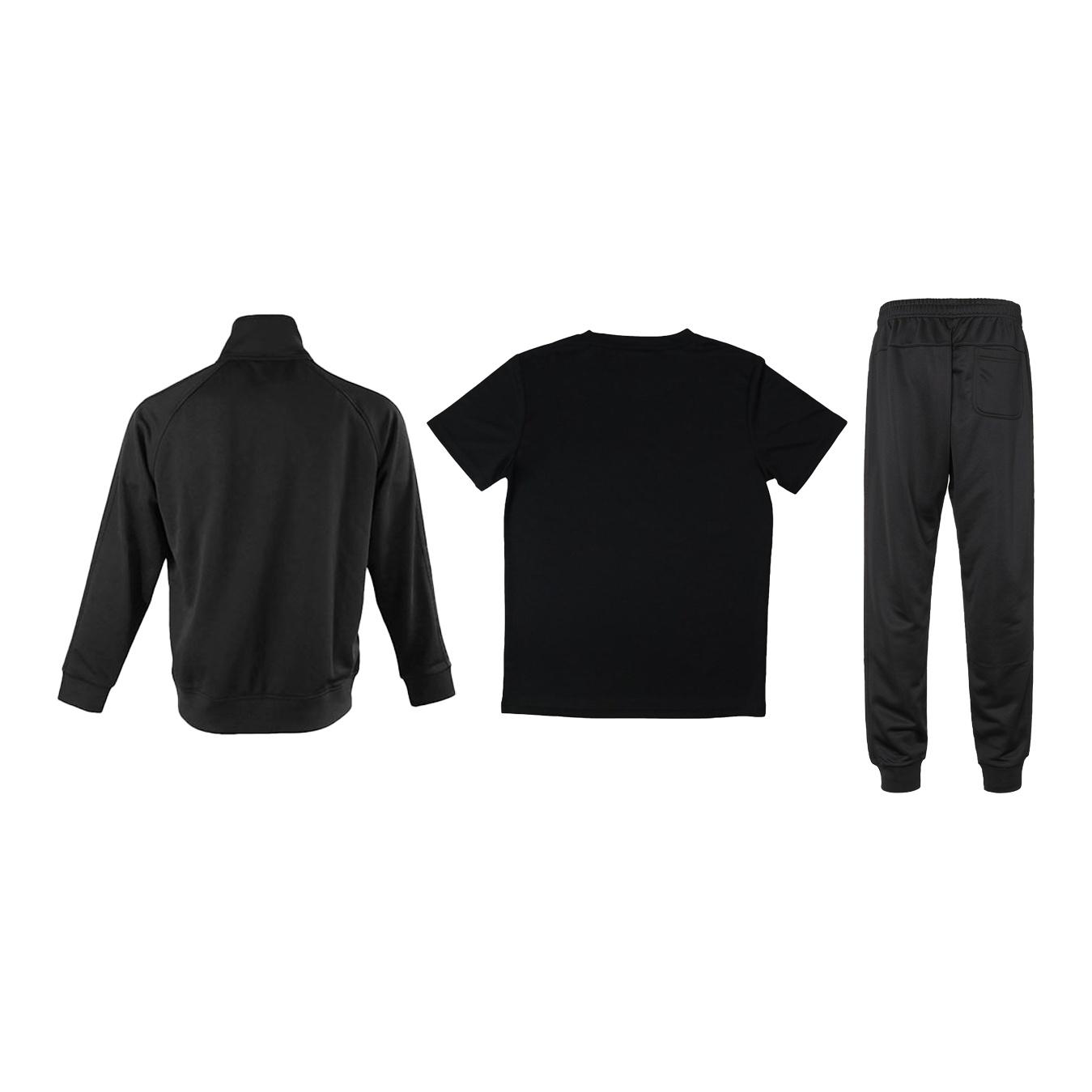 Adidas Casual Sportswear Men Set Black Coats+Black Background Gold Logo T-Shirts+Black Pants