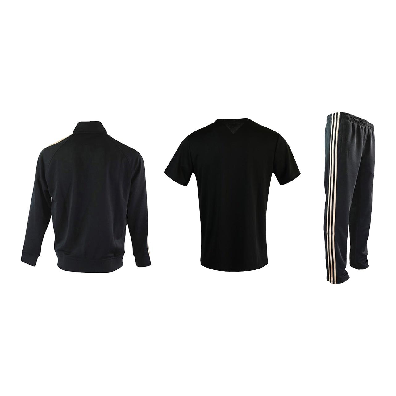 Adidas Casual Sportswear Men Set Black/Gold Coats+Black T-Shirts+Black/Gold Pants