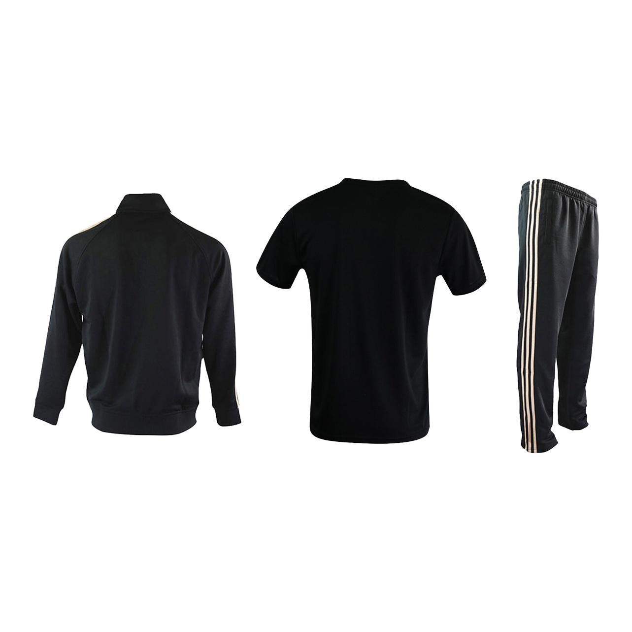 Adidas Casual Sportswear Men Set Black/Gold Coats+Red Black T-Shirts+Black/Gold Pants