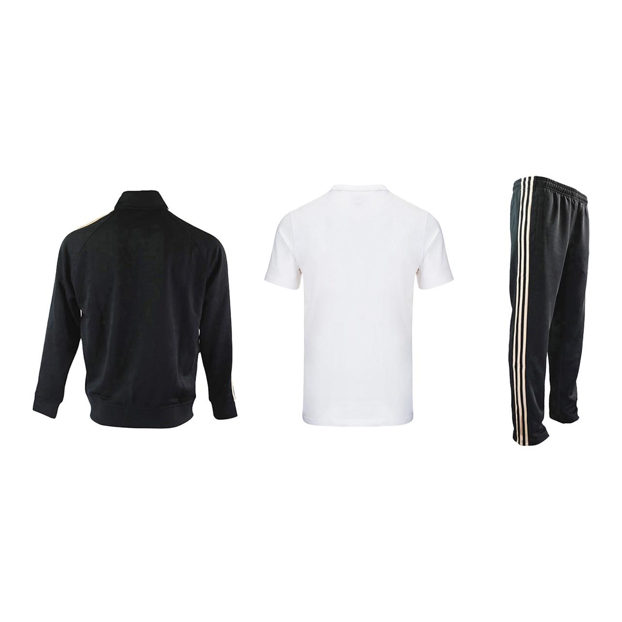 Adidas Casual Sportswear Men Set Black/Gold Coats+White Black T-Shirts+Black/Gold Pants