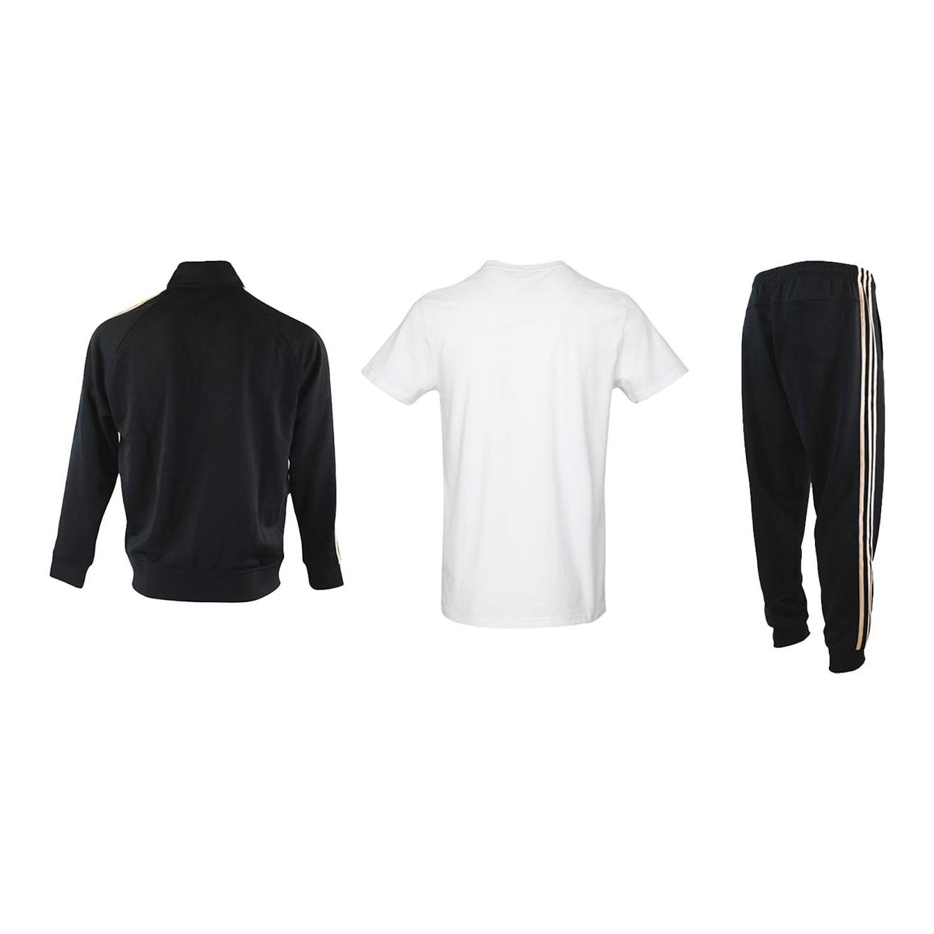 Adidas Casual Sportswear Men Set Black/Gold Coats+White Gold T-Shirts+Black/Gold Pants