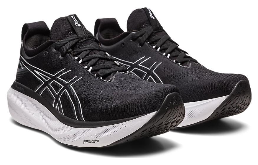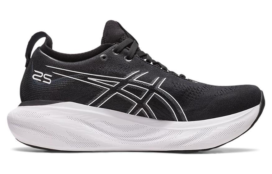 Asics Gel Nimbus 25 Комфортная ткань Низкий топ Марафон Беговые кроссовки Женские Черный Белый