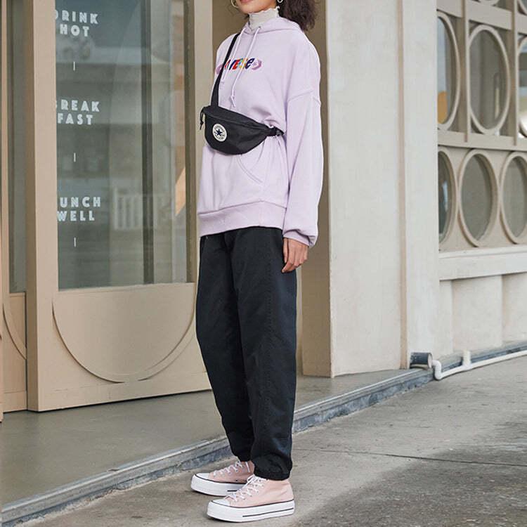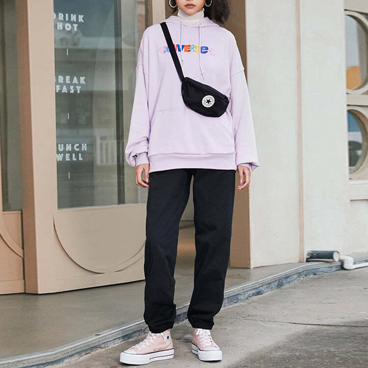 Converse Contrasting Colors Alphabet Embroidered Knit Hoodie Purple 10023947-A03