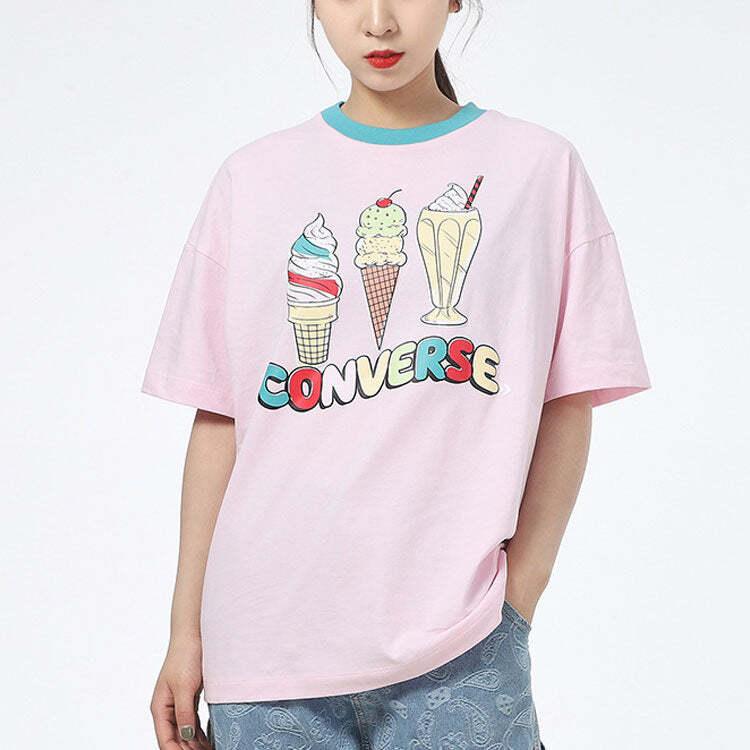Converse Ice Cream Printing Sports Short Sleeve Pink T-Shirt 10022853-A02