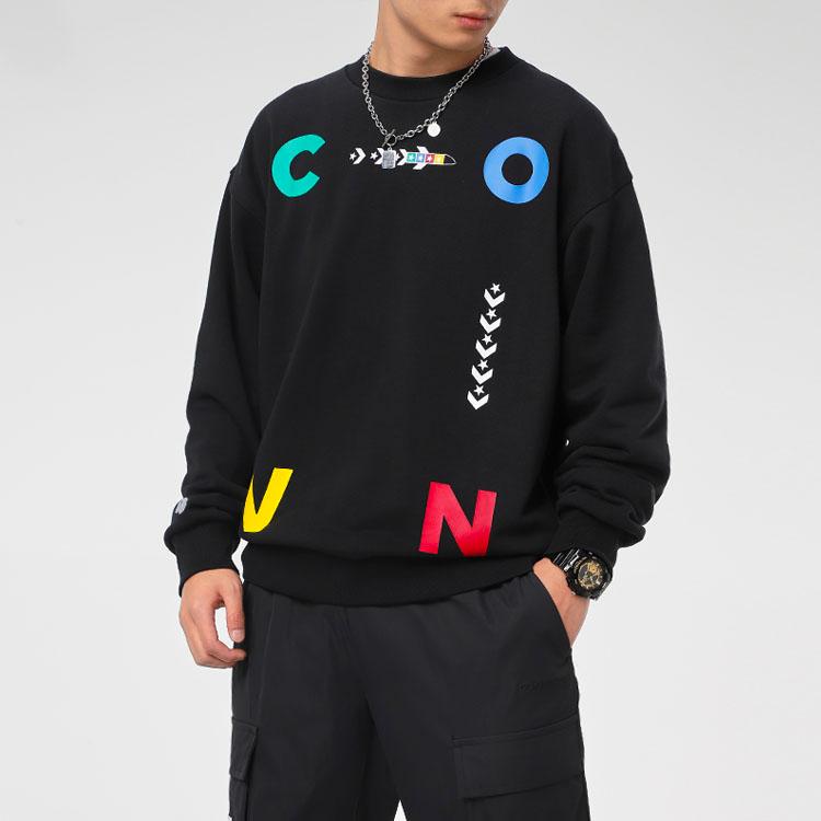 Converse Sports Contrast Letter Print Crew Neck Sweatshirt 'Black' 10022414-A01