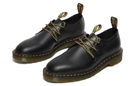 Ботинки Dr.Martens Engineered Garments x 1461 'Black Smooth' - это результат сотрудничества между Dr.Martens и маркой Daiki Suzuki's. Они созданы вручную в Wollaston и отличаются высоким качеством материалов и производства. Верх ботинок выполнен из гладкой кожи черного цвета, а подошва изготовлена из резины.