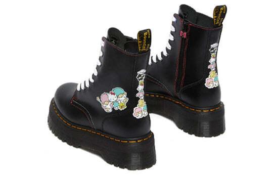 Ботинки Dr. Martens Hello Kitty Friends Jadon Black Polished Smooth 26839001 - это унисекс ботинки на платформе с 8 люверсами, выполненные из кожи Polished Smooth. Они черного цвета и имеют классический дизайн Dr. Martens. Ботинки представляют собой коллаборацию Dr. Martens и Hello Kitty and Friends.