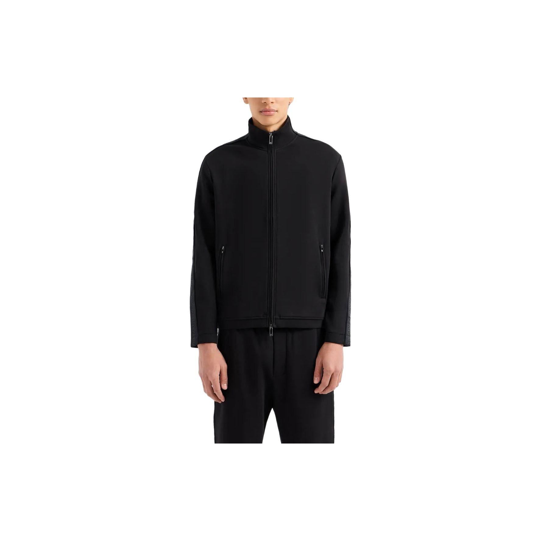 EMPORIO ARMANI Double-jersey Full-zip Sweatshirt With Logo Tape