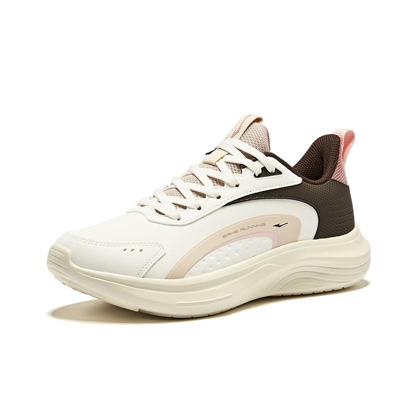 Erke Running Shoes Women's Low-top Microcrystalline White Deep Mahogany Color