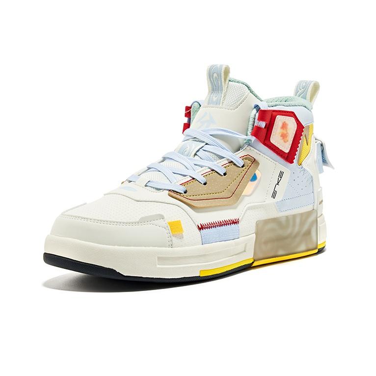Erke Strange Bomb Skateboard Shoes Men High-top Oak Bud White/light Grayish Blue