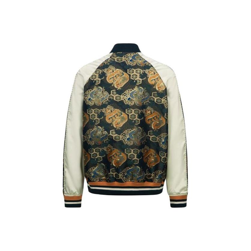 EVISU FW23 Men's Logo Embroidered Brocade Full Print Jacket Gold