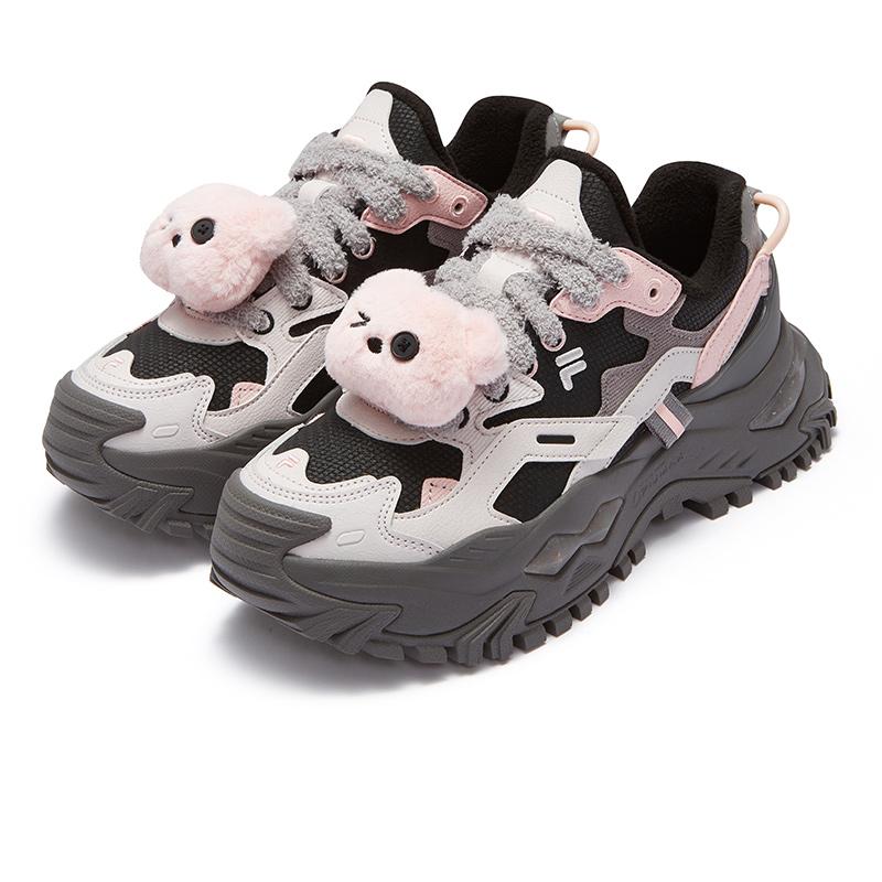 FILA FUSION Bianco Casual Низкий Топ Женский 1007-Флисовая подкладка (Черные балетки/Серо-фиолетовые)
