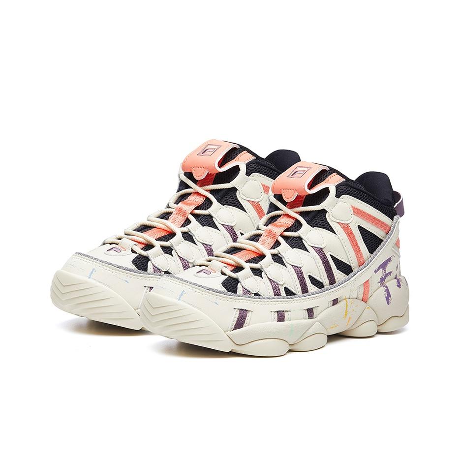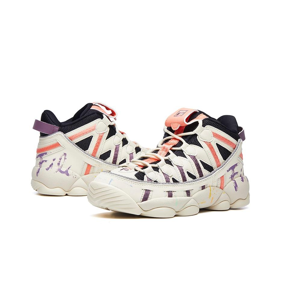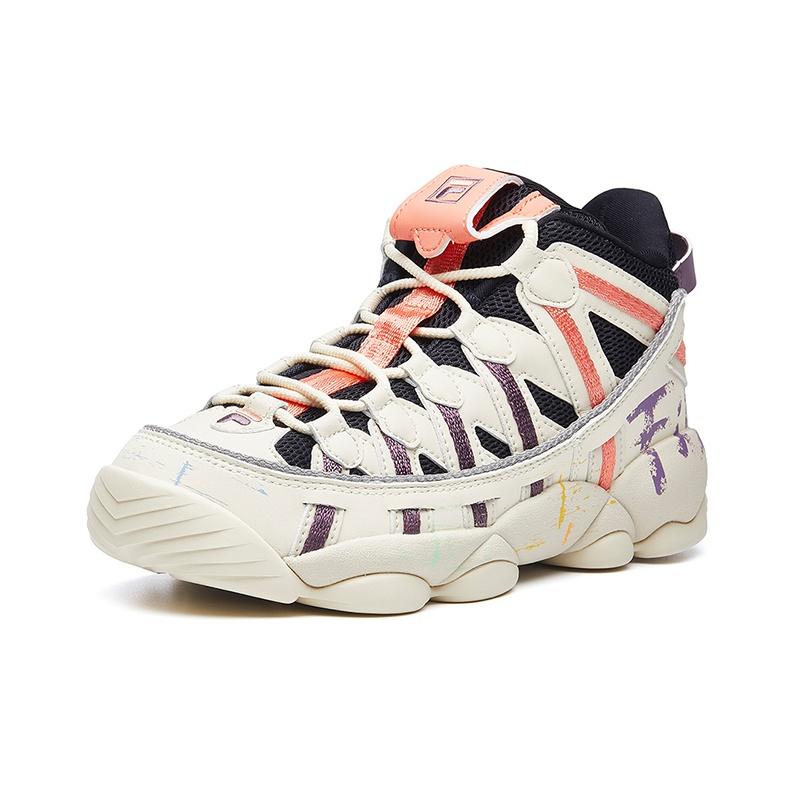 FILA FUSION Spaghetti Vintage Basketball Shoes Women's Low-top White/Orange/Purple