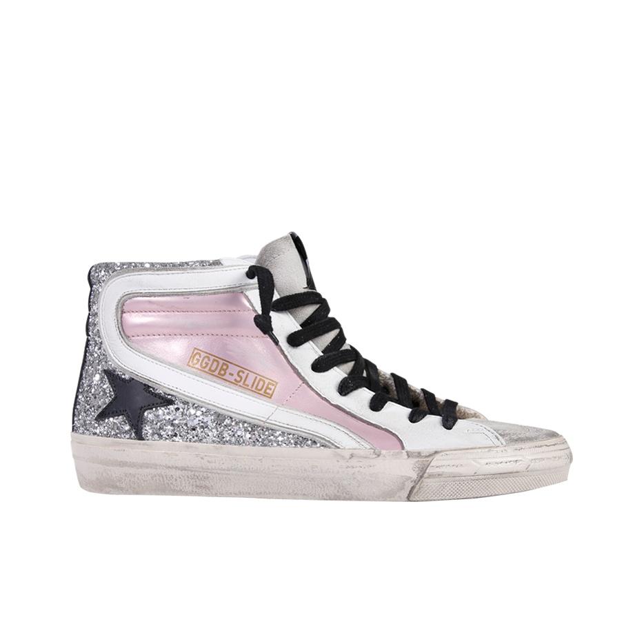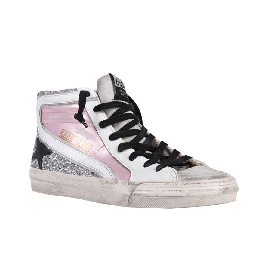Golden Goose Slide Skateboarding Shoes Women's High-top White/pink/silver