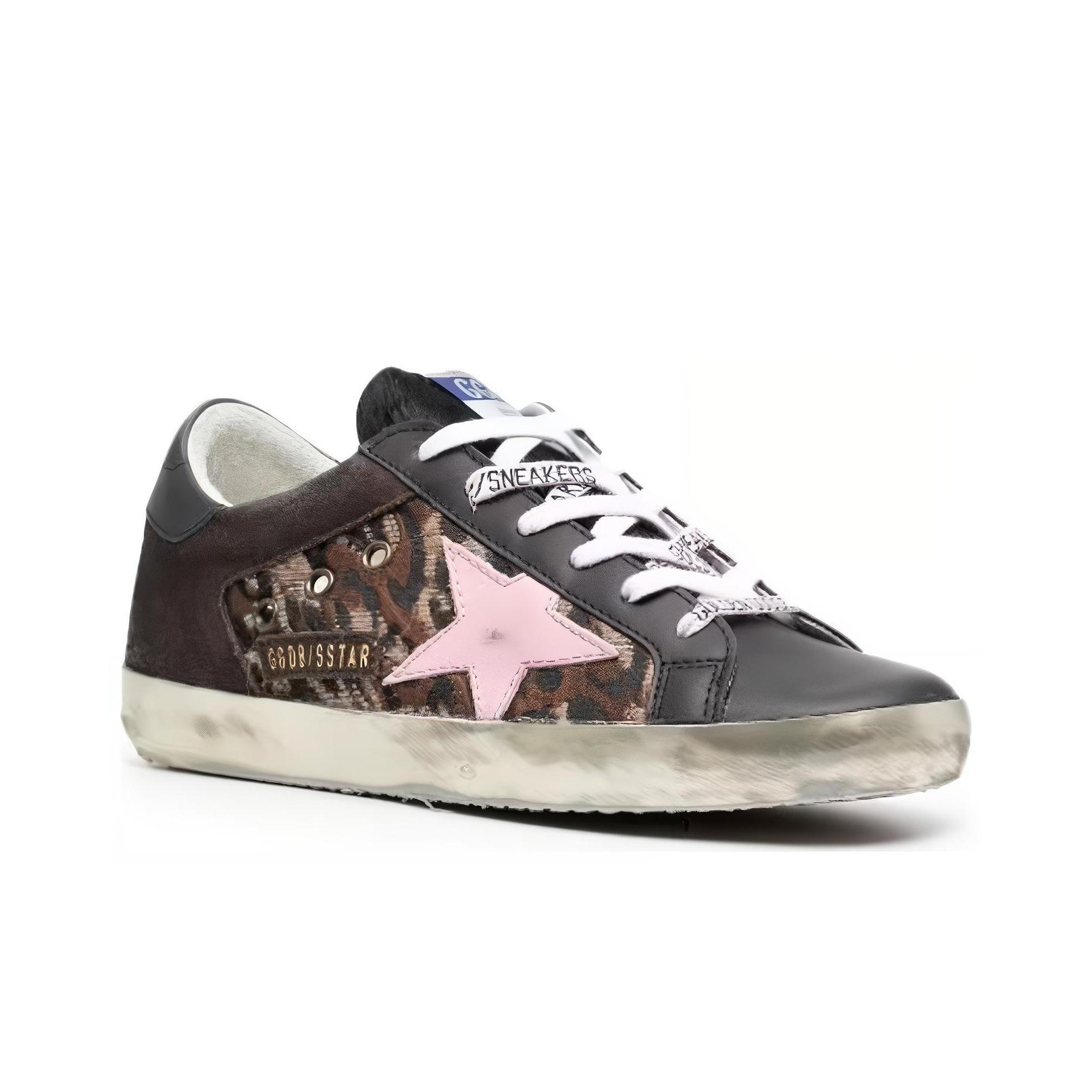 Golden Goose Super-Star Skateboarding Shoes Women's Low-top Leopard Print Black