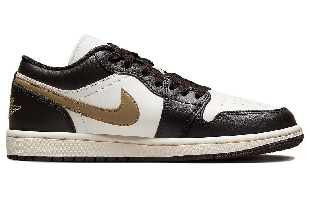 Jordan Air Jordan 1 Золото Крючок Мокко Амортизация Противоскользящий Устойчивый к истиранию Низкий Топ Оригинальная обувь, коробка включена