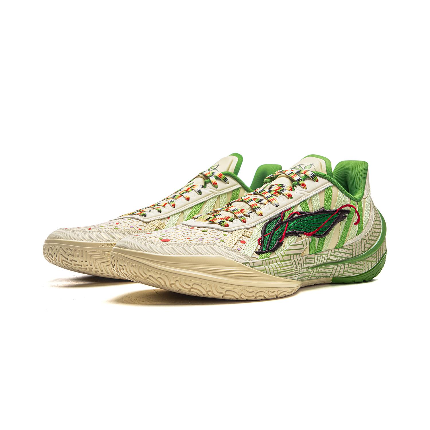Li NING Blade 5 V2 Амортизация Противоскользящие Дышащие Низкие Баскетбольные Кроссовки Мужские Зеленые Бежевый Зеленый
