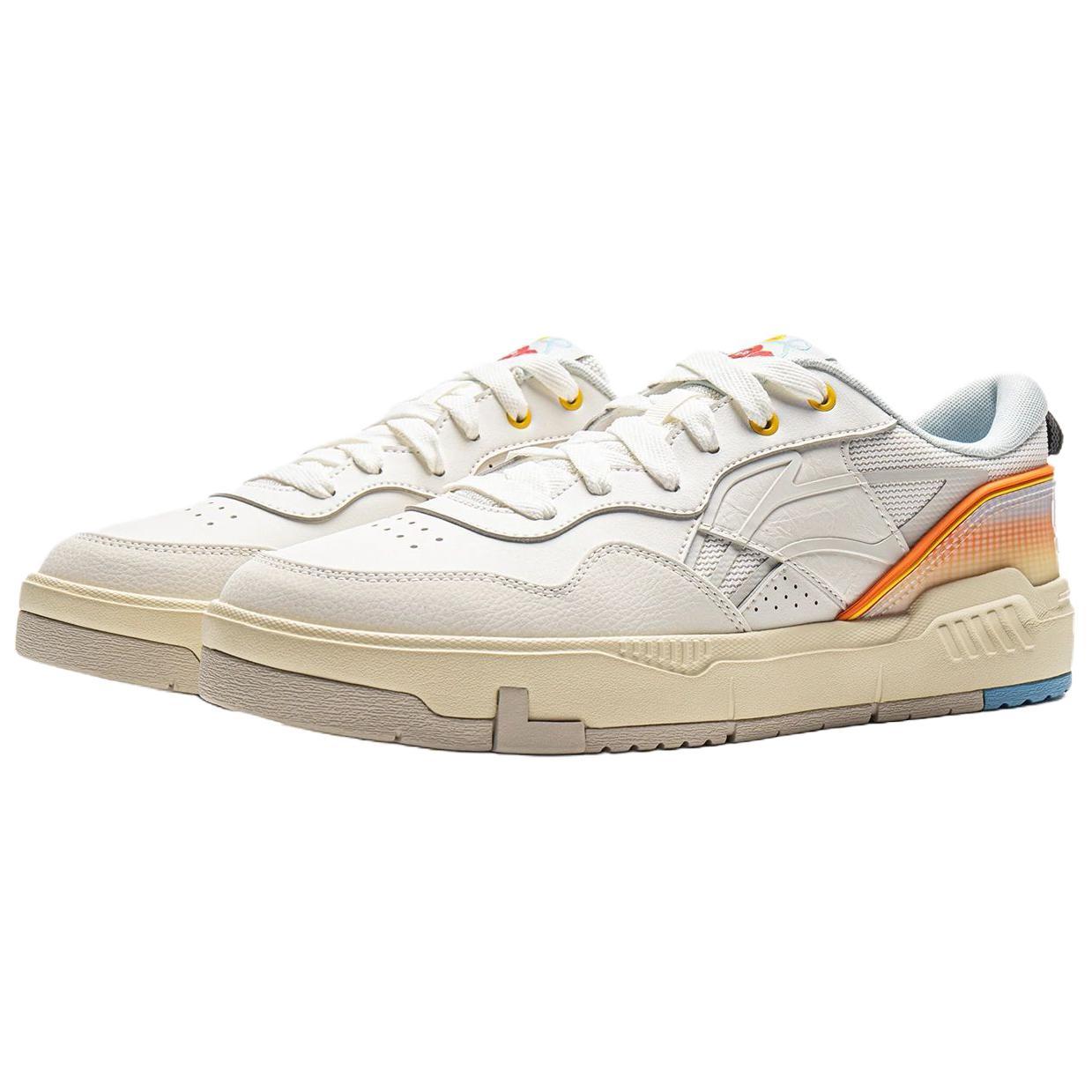 Li NING Common 80s Синтетическая кожа Противоскользящие Легкие Низкие Кроссовки для скейтбординга Мужские Белый Желтый Белый желтый