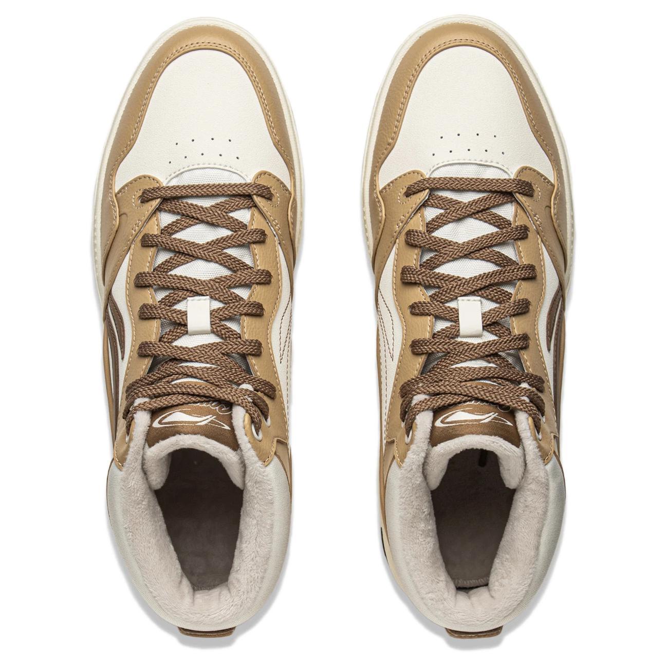 Li NING Common 80s Термический противоскользящий и износостойкий MID Топ Скейтборд Кроссовки Мужские Чай Коричневый Экрю Чай Коричневый/Экрю