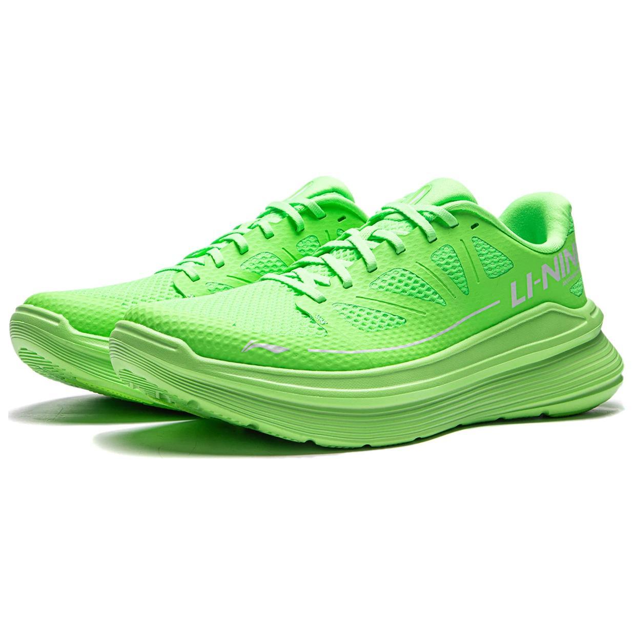 Li NING Ling Yue Ткань Амортизация Противоскользящие Низкие Беговые кроссовки Мужские Неоновый зеленый
