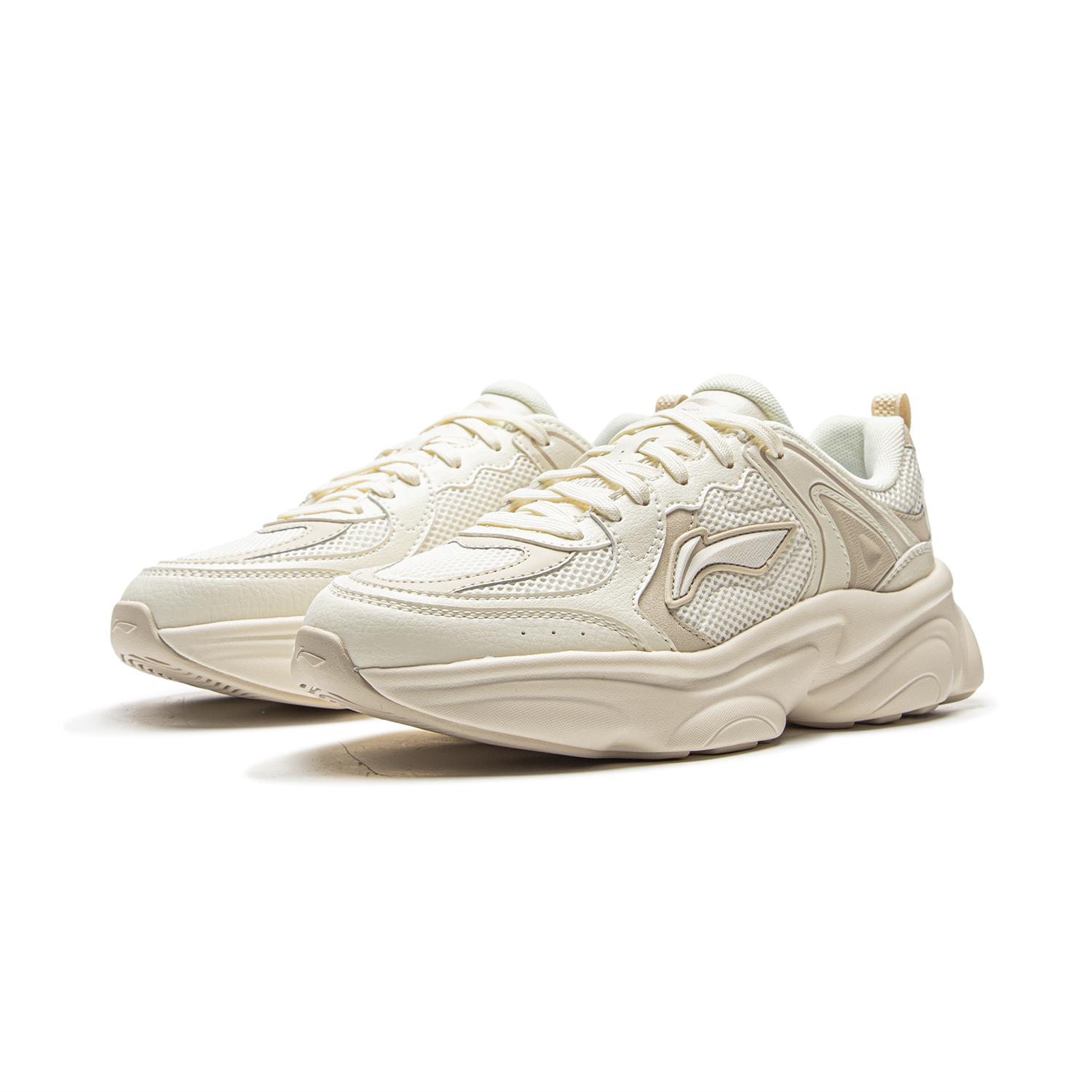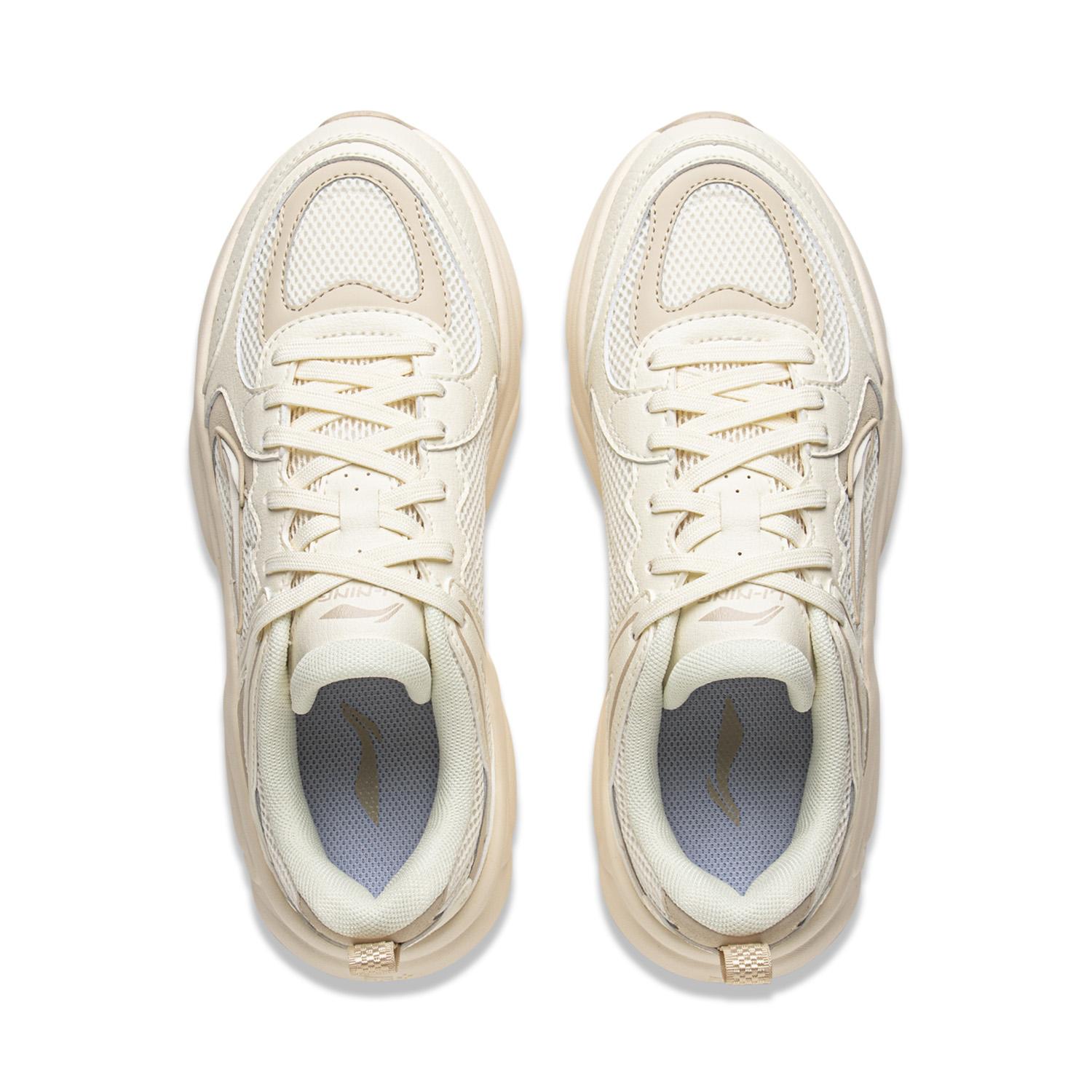 Li NING Milk Coconut Легкий визуально увеличивает рост с отскоком дышащий низкий верх кроссовки с толстой подошвой Бежевый