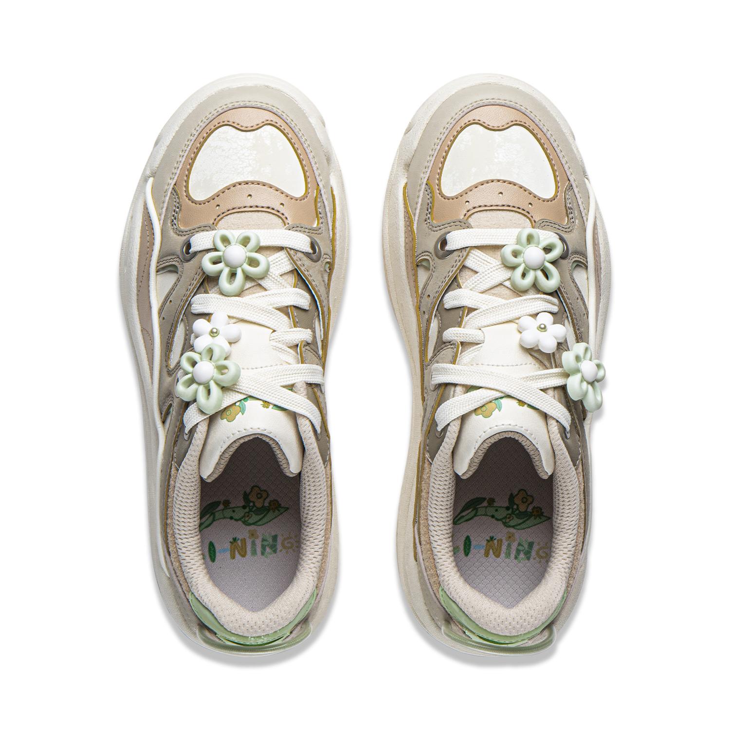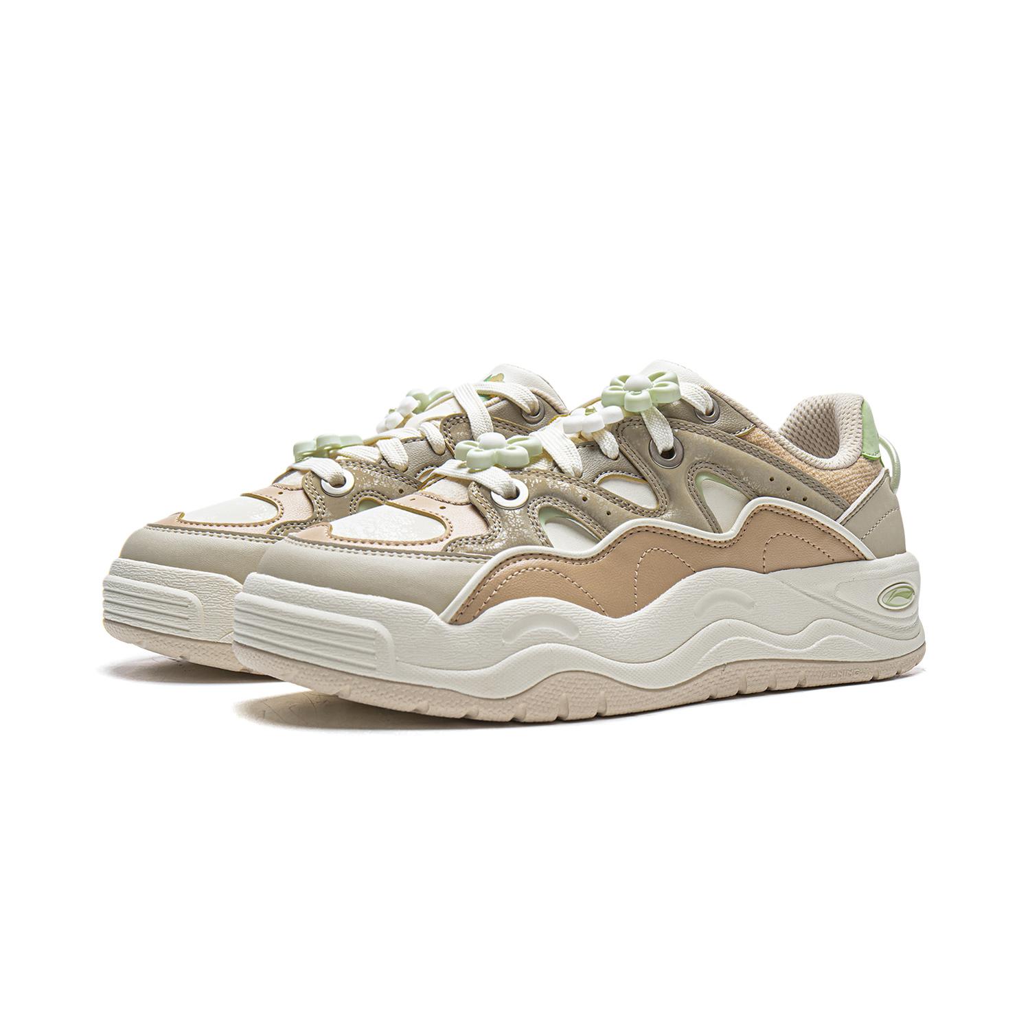 Li NING Орхидея Цвет Покрытие Противоскользящее Амортизация Устойчивость к истиранию Легкий Увеличение Высоты Низкий Топ Королева Карамельно-коричневый Коричневый/Экрю/Сказочный зеленый