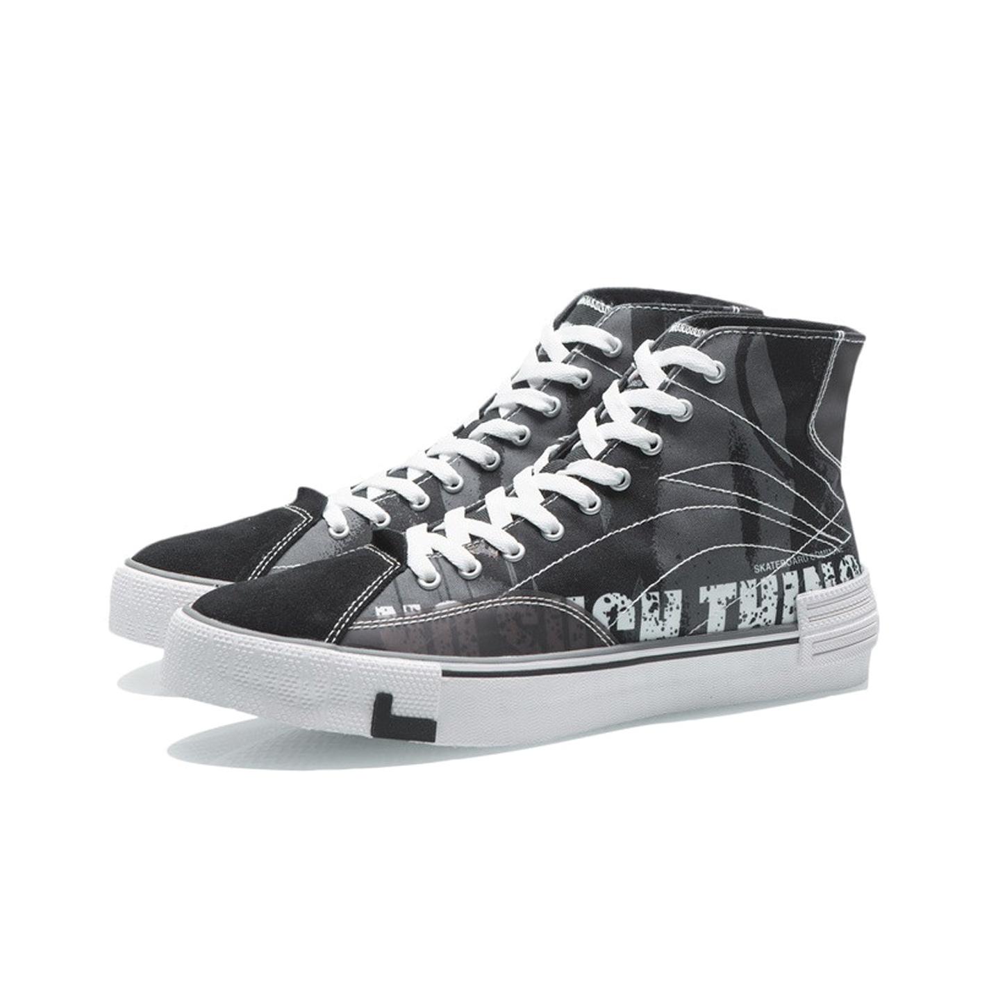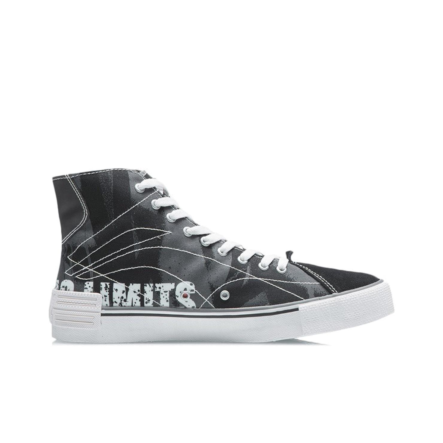 Li NING Wave CANVAS HI Удобная противоскользящая и износостойкая высокая обувь для скейтбординга Мужская Черная