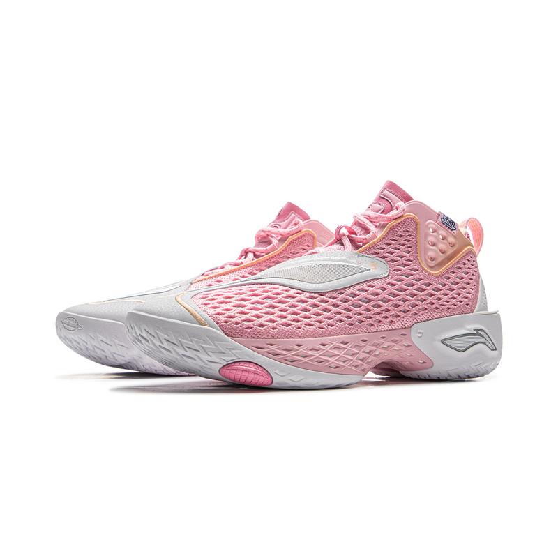 LiNing BadFive 5 Противоскользящий Устойчивый к износу Дышащий Отскок Сцепление MID Топ Баскетбольные кроссовки Мужской Розовый Белый Розово-белый