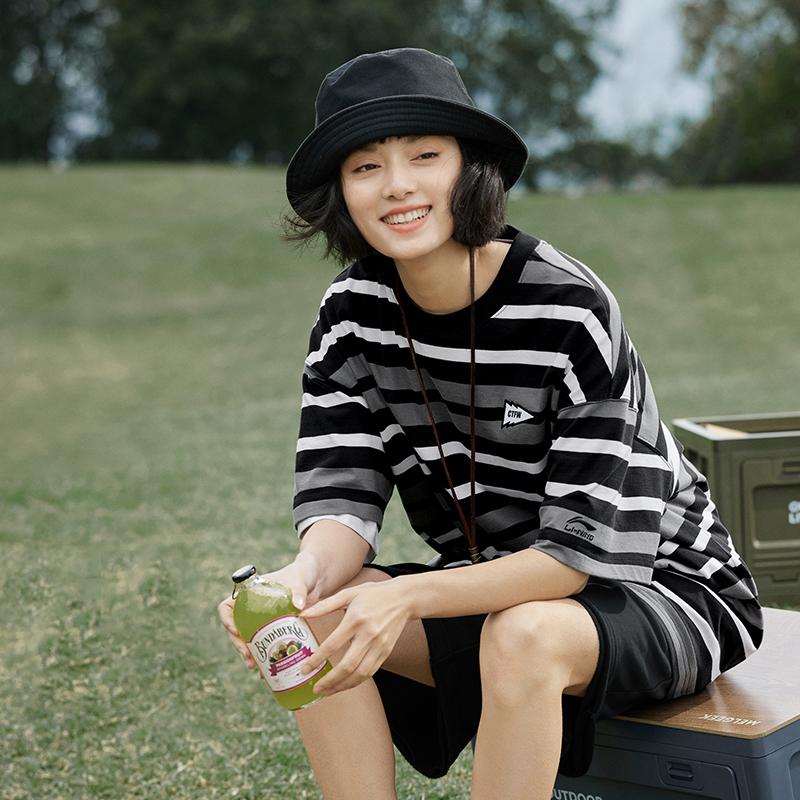 LiNing CF Drop Shoulder Sleeve T-Shirt Unisex Double White Stripes