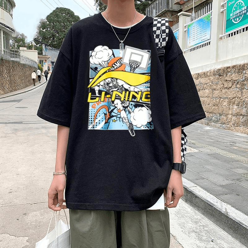 LINING T-Shirts Men Black Loose Fit Runs Small Consider 1 Size Up