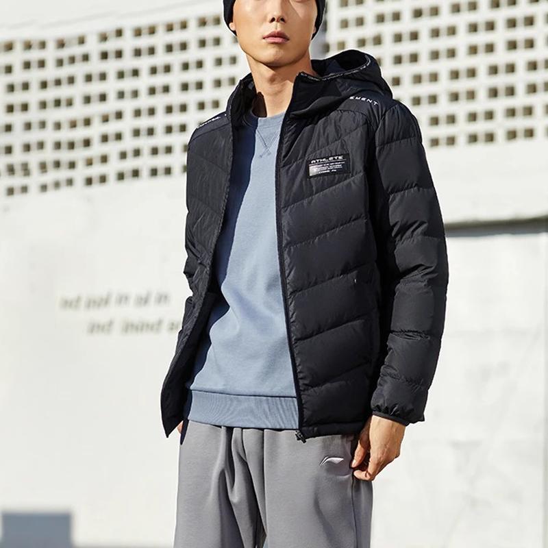 LiNing Training Series Solid Color Letters Hooded Down Jacket Men's Black