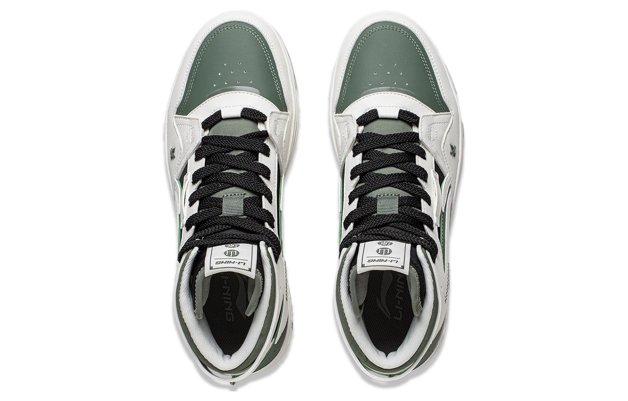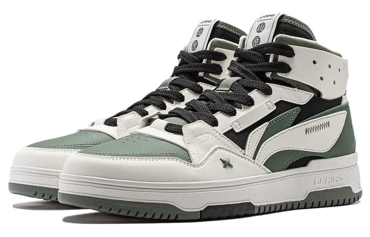LINING Yamahara Кроссовки для скейтбординга Высокие Белый зеленый черный Мужские Белый, зеленый, черный