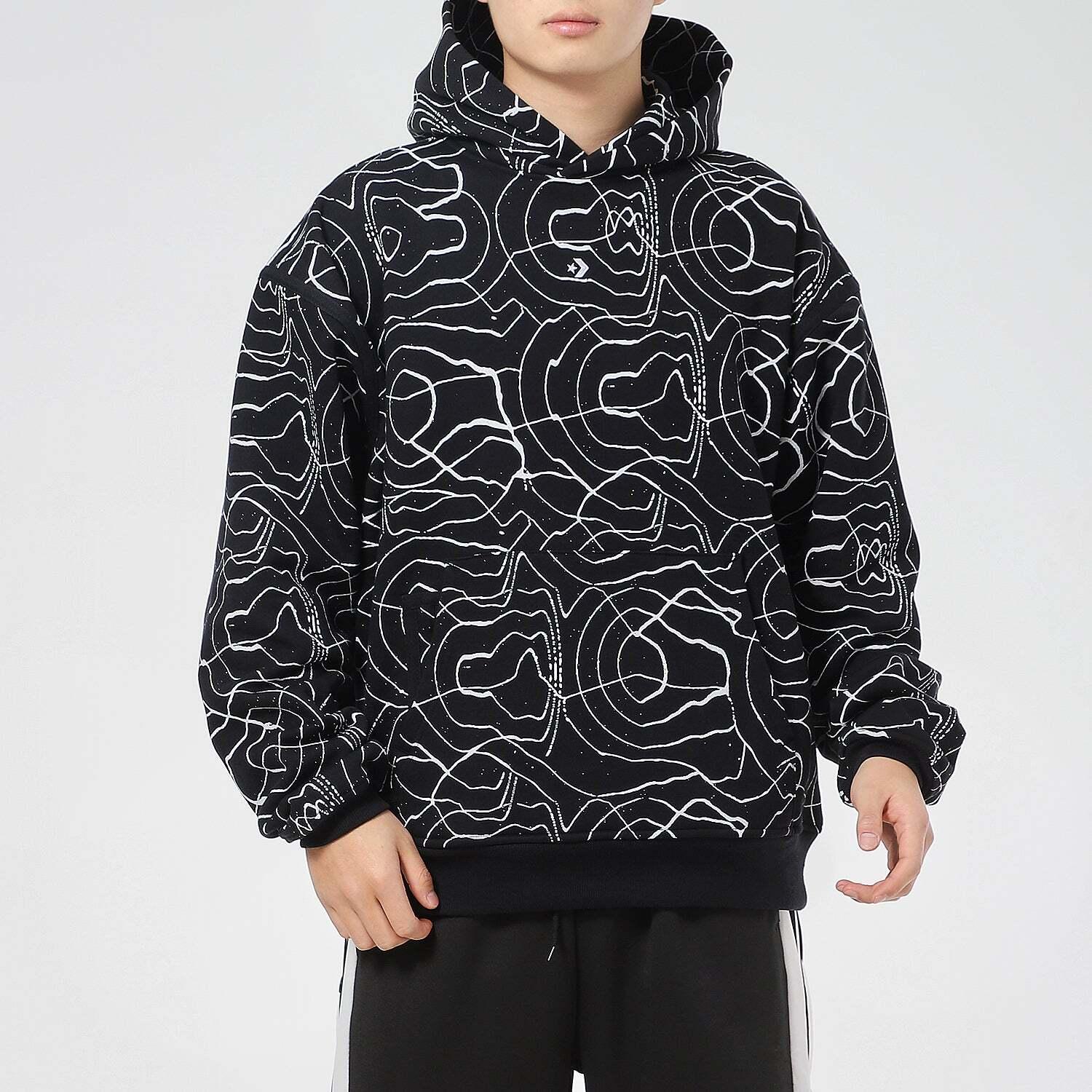 Men's Converse Athleisure Casual Sports Splash Ink Printing Hooded Fleece Lined Pullover Full Print 10022229-A01