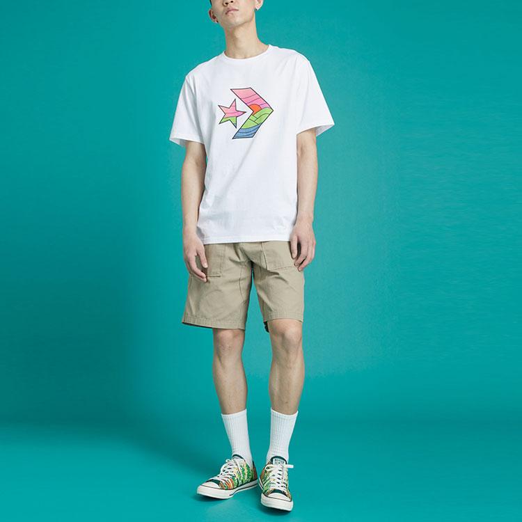 Men's Converse Contrasting Colors Casual Sports Printing Short Sleeve White 10021515-A01