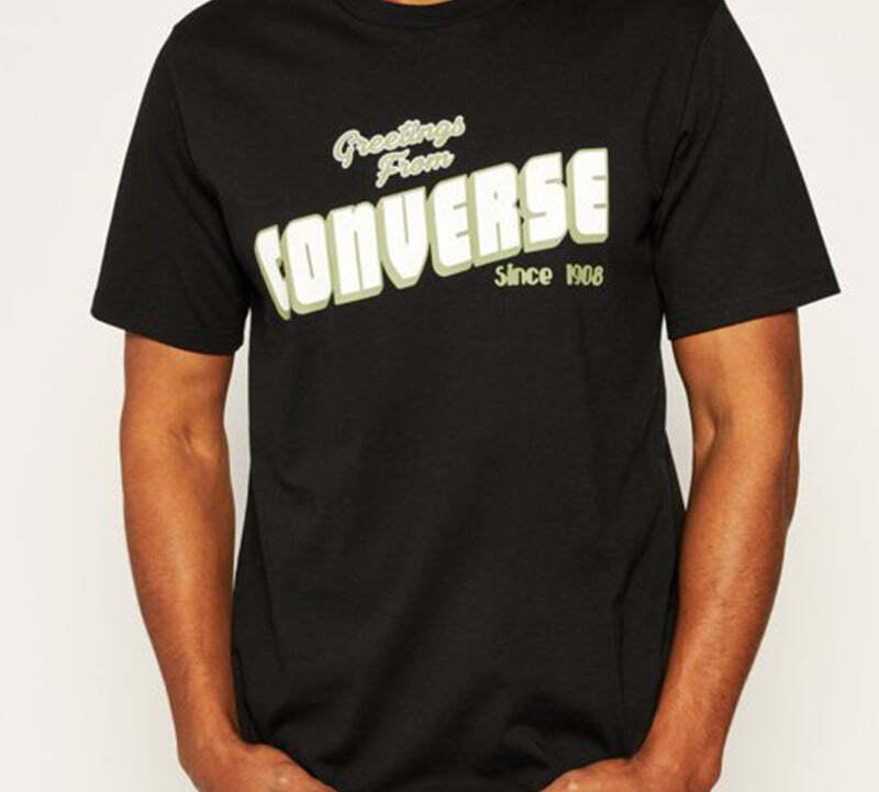 Men's Converse Loose Alphabet Printing Short Sleeve Casual Black 10019604-A02
