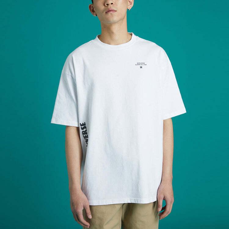 Men's Converse Skate Loose Printing Sports Round Neck Short Sleeve White 10021508-A03