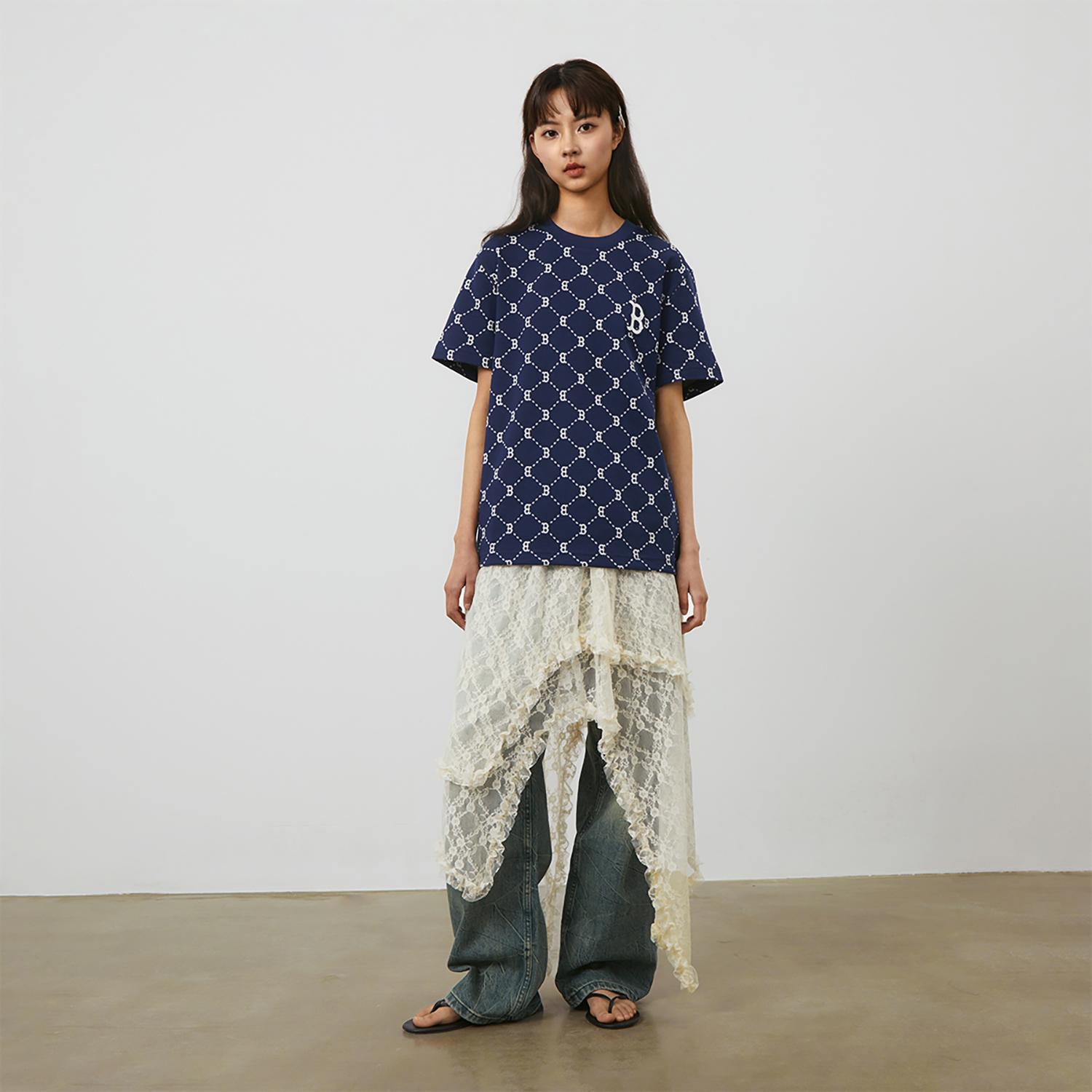 MLB MONOGRAM Reading Collection Set-in Sleeve T-Shirt Unisex Navy Blue