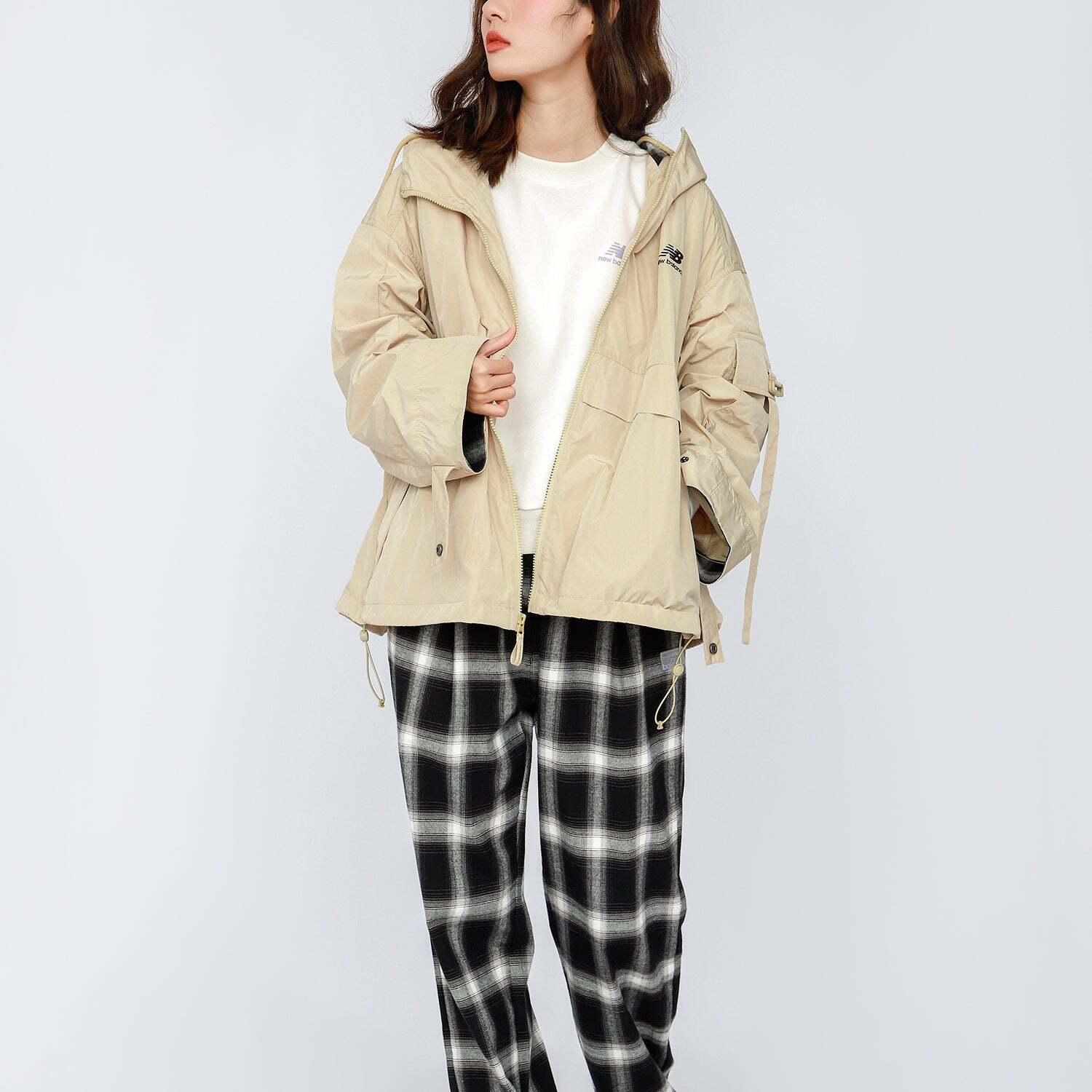 New Balance Logo Printing Woven Hooded Track Jacket Khaki AWJ13333-BEI