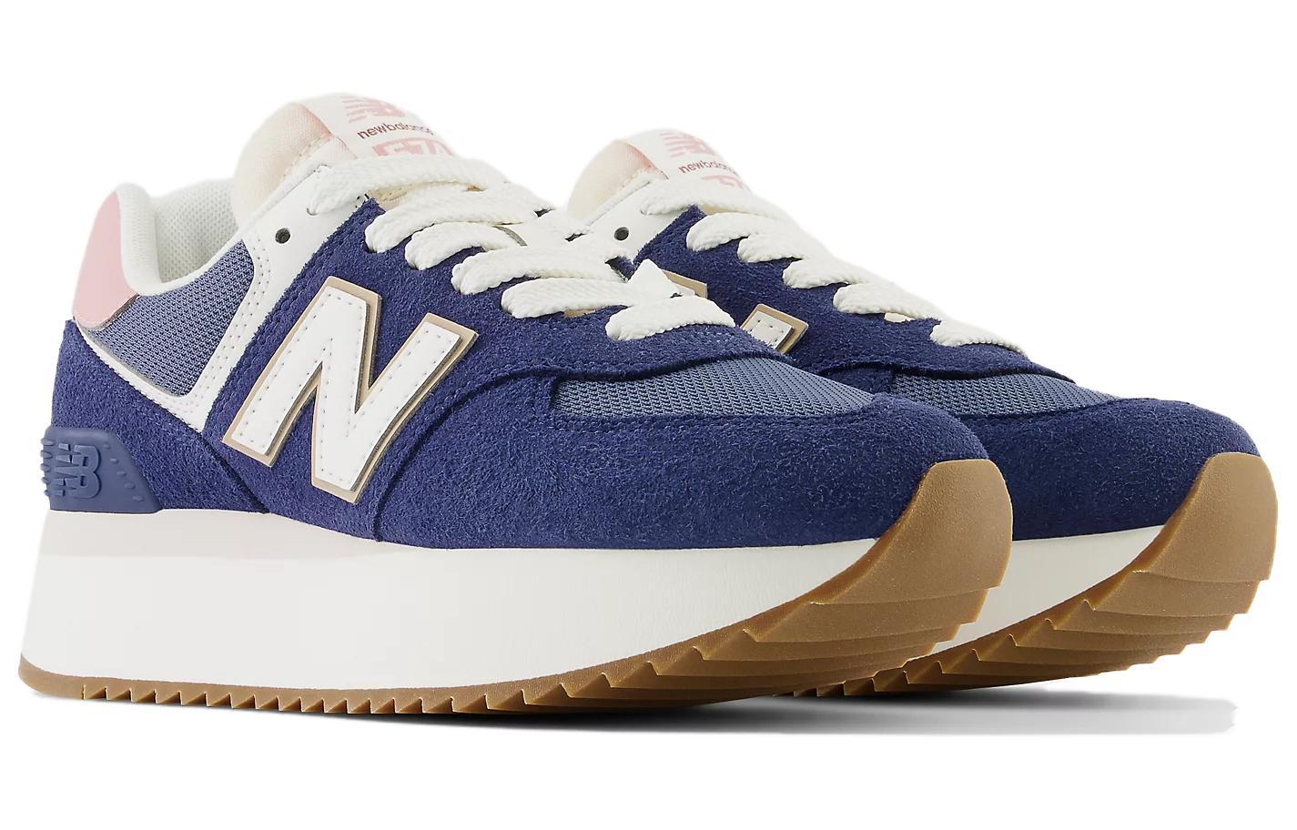 New Balance NB 574+ Беговые кроссовки Низкие Синий Белый Розовый Женские Стандарт (B)
