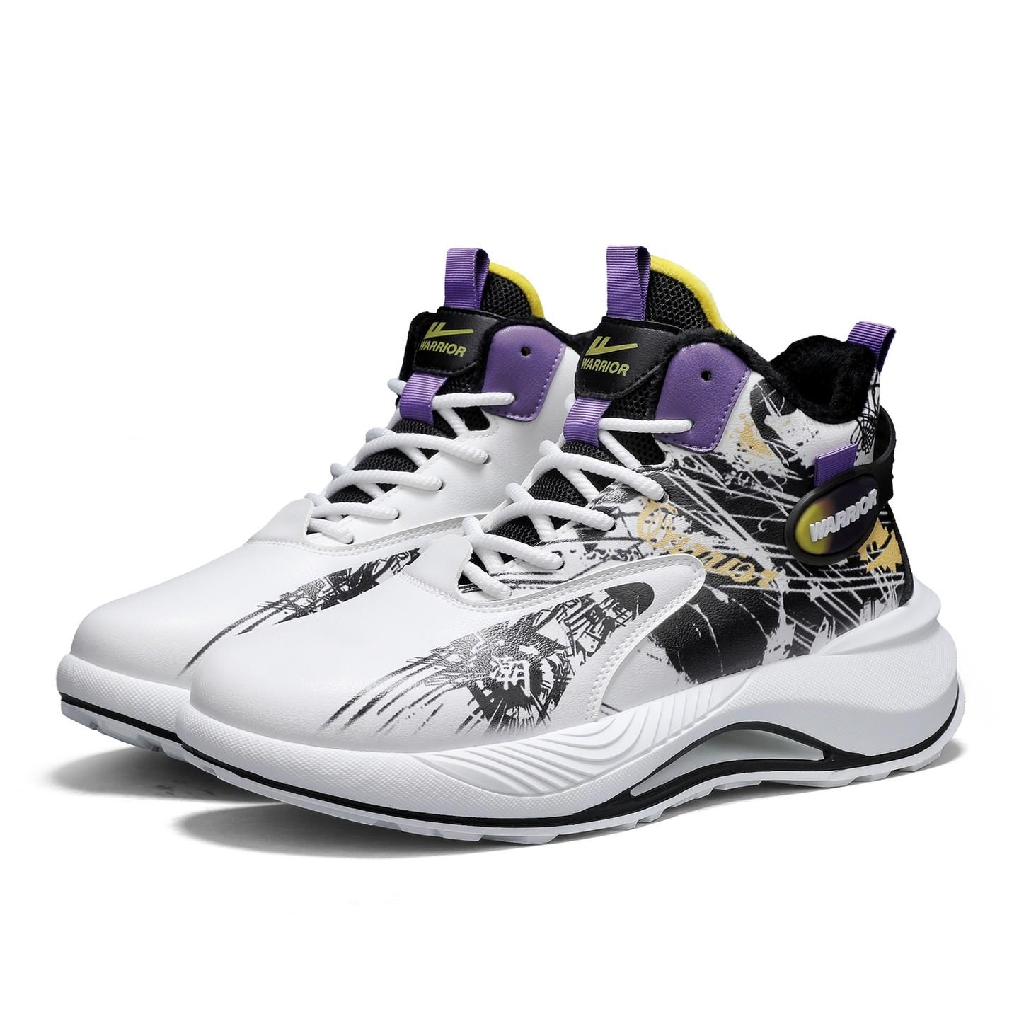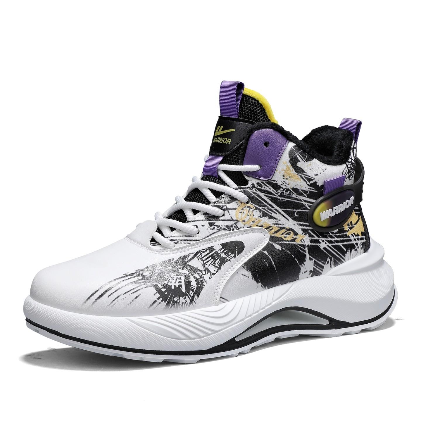 Warrior Амортизация Устойчивость к истиранию Термический MID Топ Баскетбольные кроссовки Мужские Белый, синий, желтый