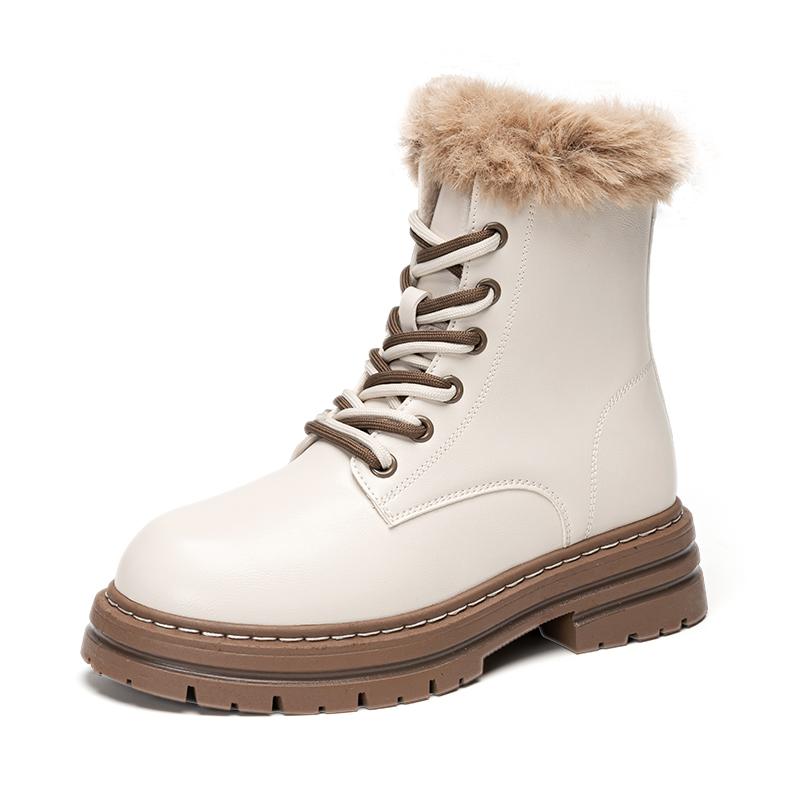 Warrior Британский стиль С флисовой подкладкой Удобные Короткие Армейские ботинки 4,5 см Женские Бежевые