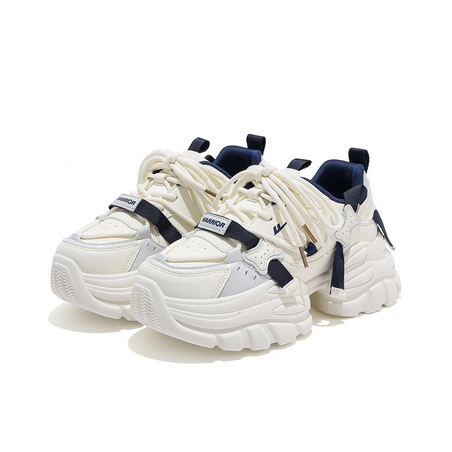 Warrior Дышащий Легкий Увеличение Высоты Низкий Топ Кроссовки с Толстой Подошвой Женские Бежевый Темно-Синий