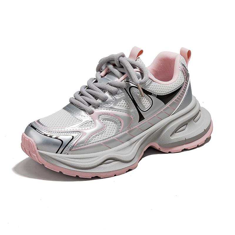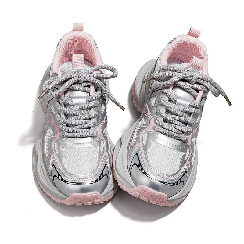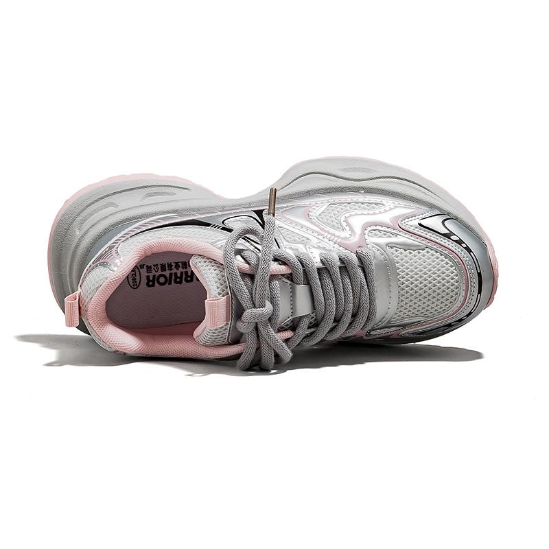 Warrior Дышащий Легкий Увеличение Высоты Низкий Топ Кроссовки с Толстой Подошвой Женские Серебряный/Розовый