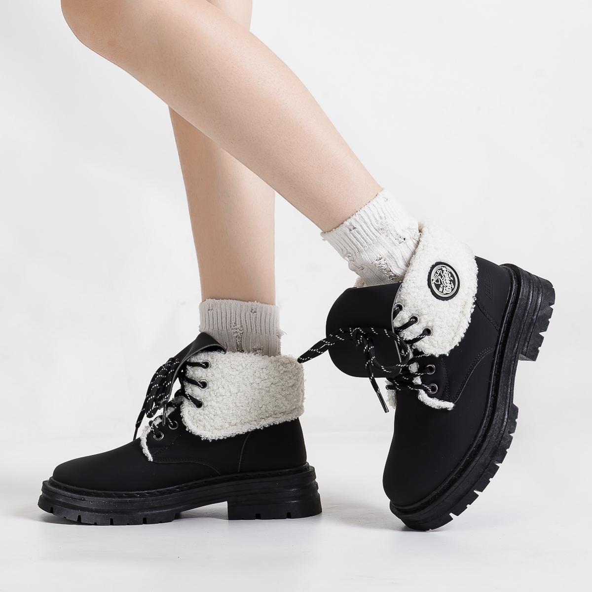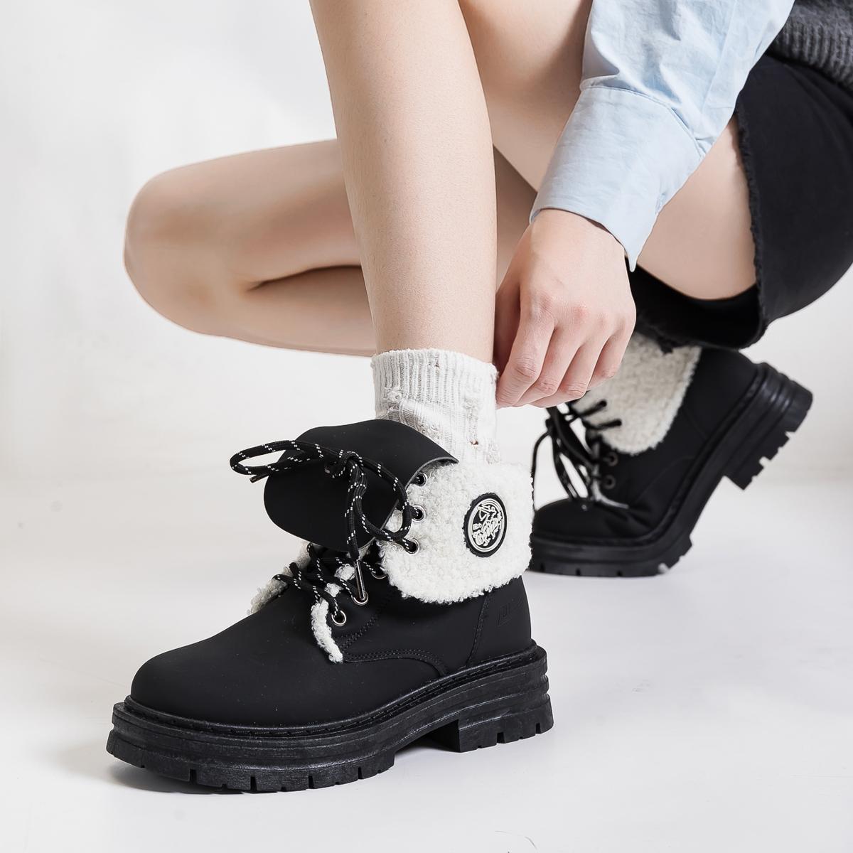 Warrior Vintage Versatile Модный Классический Толстый Хлопок с Флисовой Подкладкой Короткие Армейские Ботинки Женские