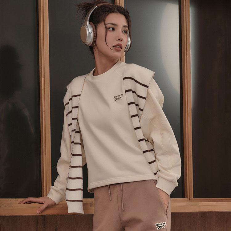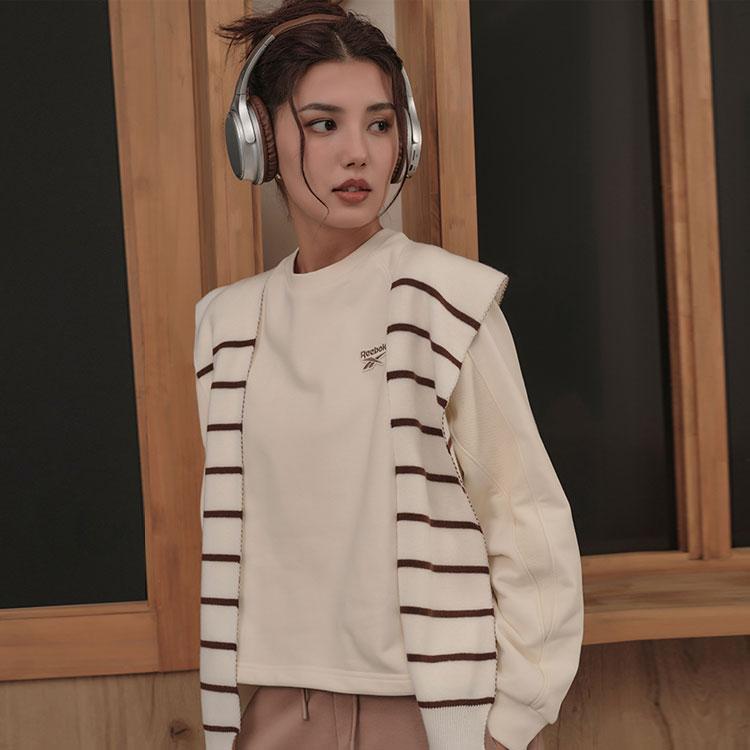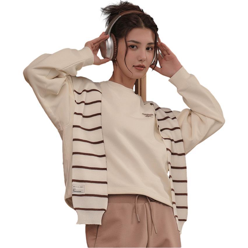 (WMNS) Reebok Round Neck Knitted Loose Casual Pullover Sweatshirt 'White' 23FRC304WGW2