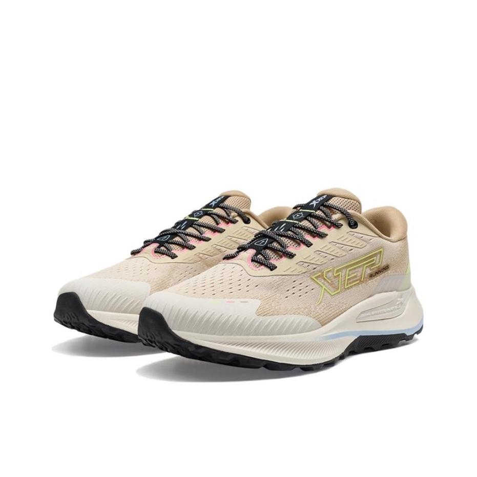 XTEP Running Shoes Men Low-top Oatmeal Beige/tea White/electric Powder Green