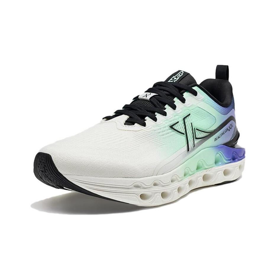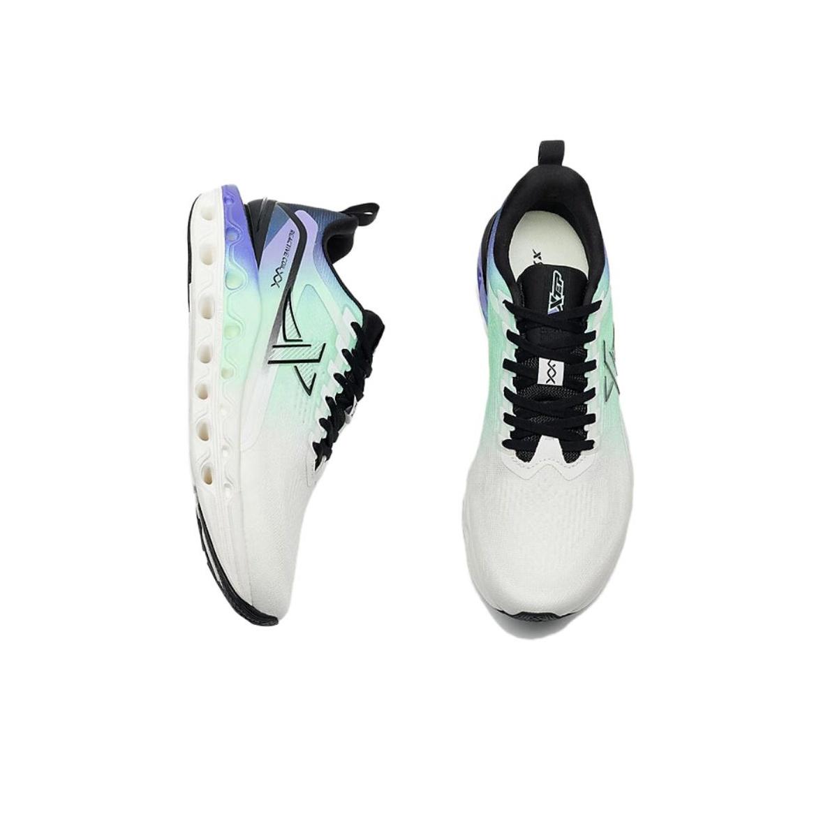 XTEP Running Shoes Men Low-top White Fluorescent Light Cyan Green Black